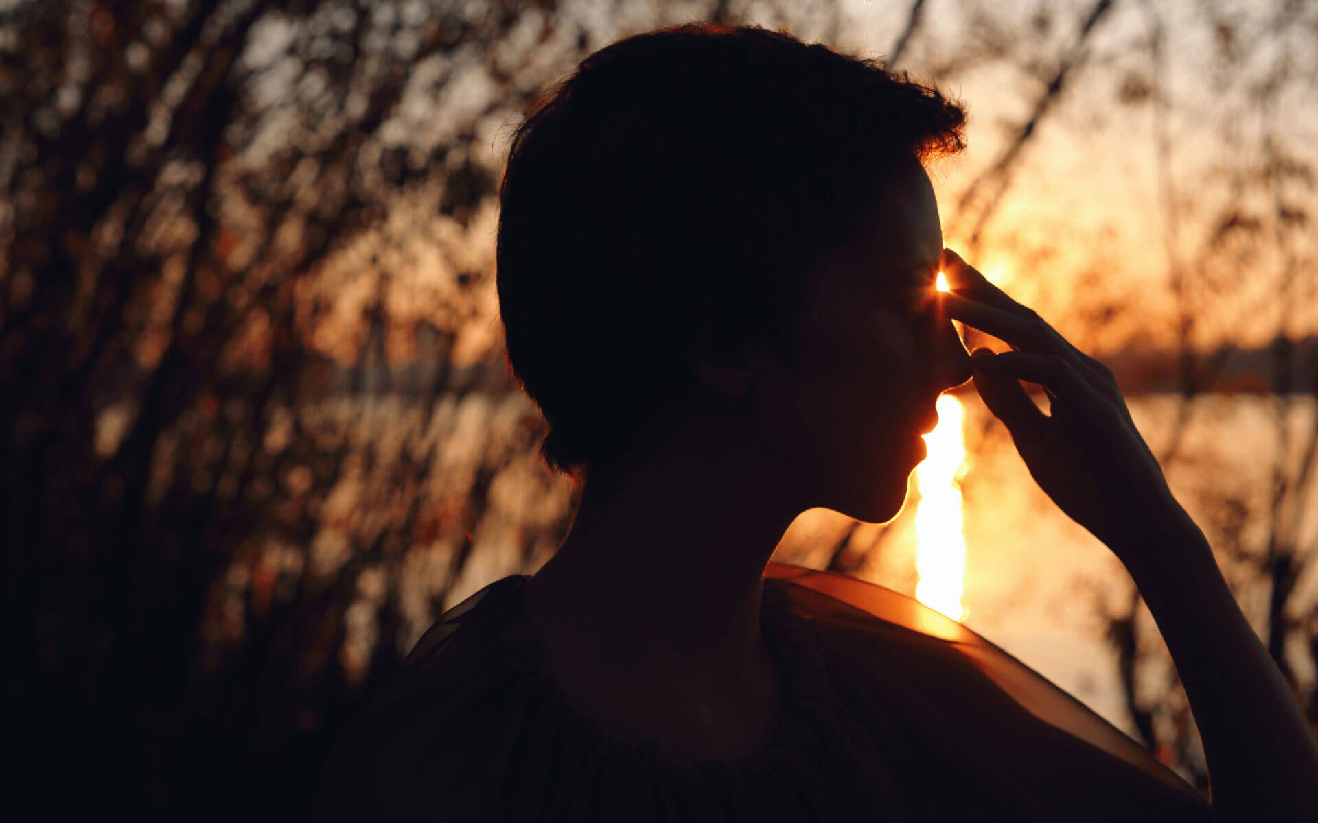 Face of a young woman with sparkles, eyes closed, representing receiving healing magic